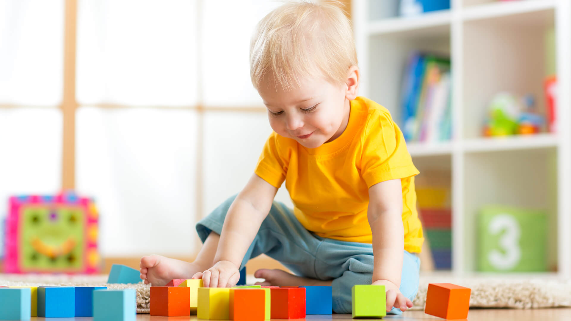 Boy baby playing with square's